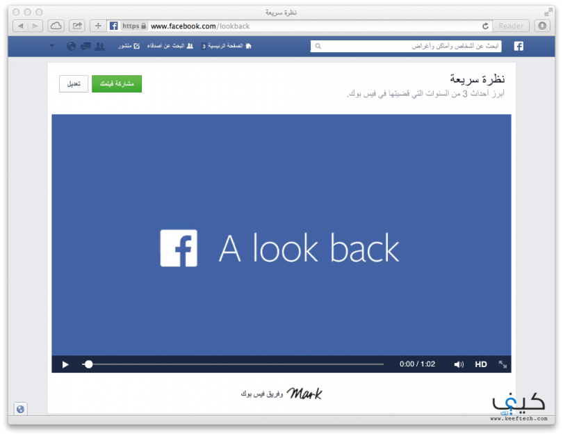 كيفية تعديل فيديو “نظرة سريعة” Look Back في فيس بوك