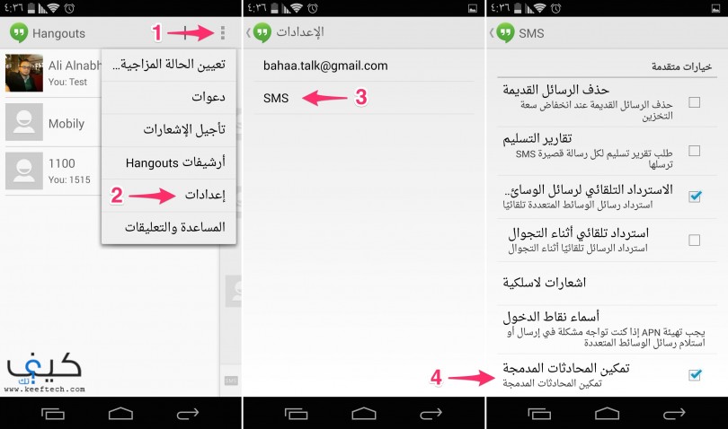 كيفية تعطيل المحادثات المدمجة في تطبيق هانج آوتس على أندرويد